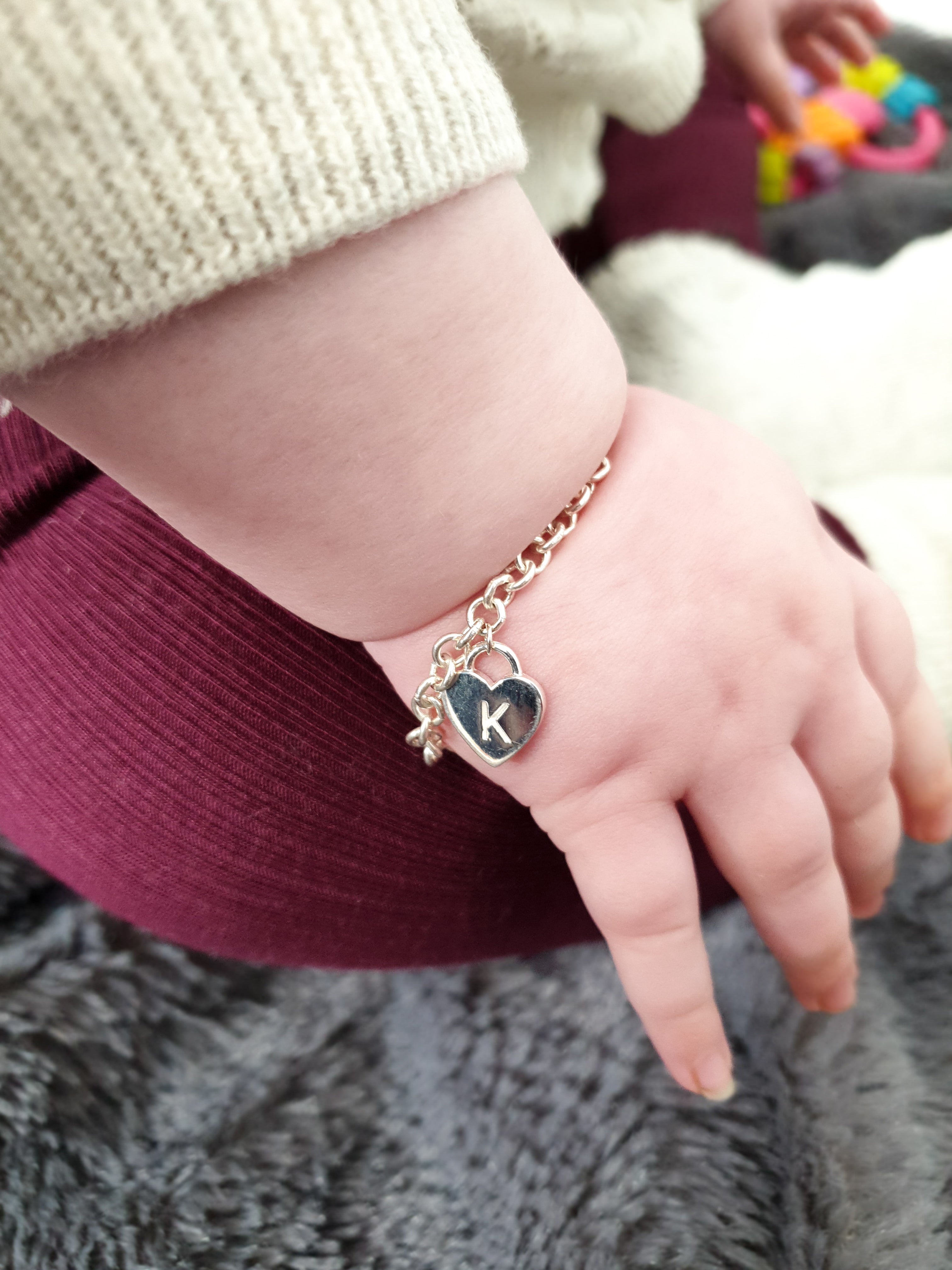 Lock in your love for your wee one with this iconic padlock charm bracelet. Made from high quality sterling silver, the bracelet features a padlock charm engraved with your chosen initial to symbolise your unconditional love.